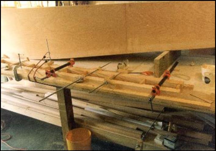 Another picture of the dihedral being set. The C shaped block is the spar alignment-drilling tool from |