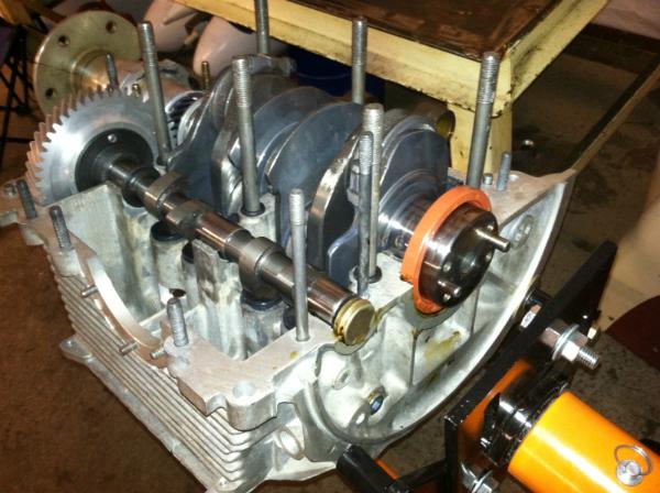 VW Engine rebuild. In the summer of 2012 I noticed a excessive amount of oil on the belly of the airplane, so I checked for the usual suspects. This time I was in for a surprise - a case crack at the number 4 cylinder going toward the oil pressure sensor. The crack originates from the case stud. This engine has been around since the 1980s, originally in a Quickie I was told. I decided to rebuild the engine and bought a new case from Revmaster. |